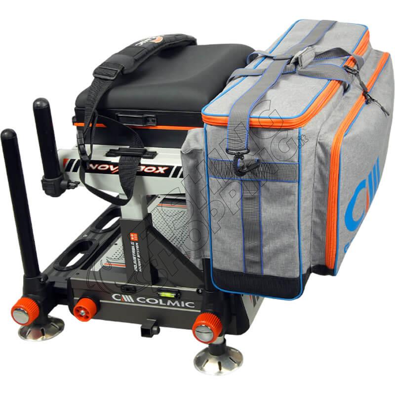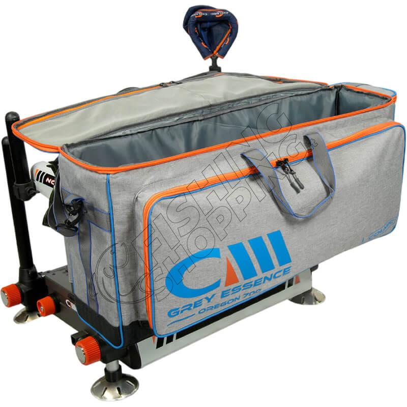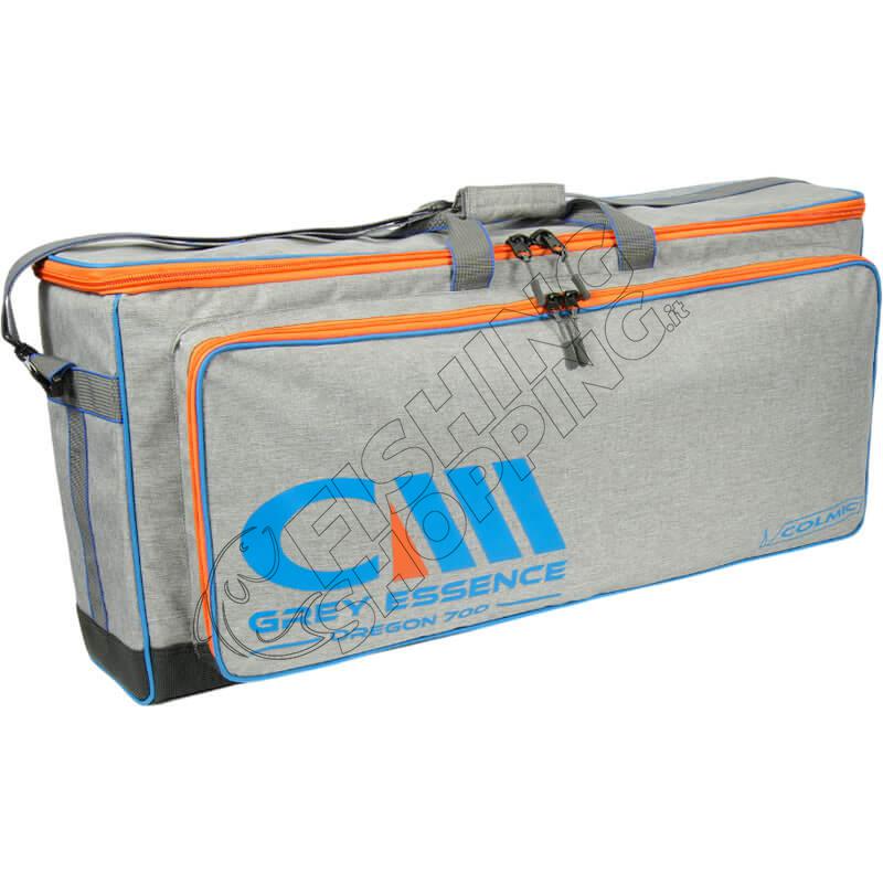 Colmic Grey Essence SEATBOX OREGON 700 is a technical carry bag designed to store rollers, clothing, accessories and various fishing equipment, suitable for both competition anglers and recreational fishing.