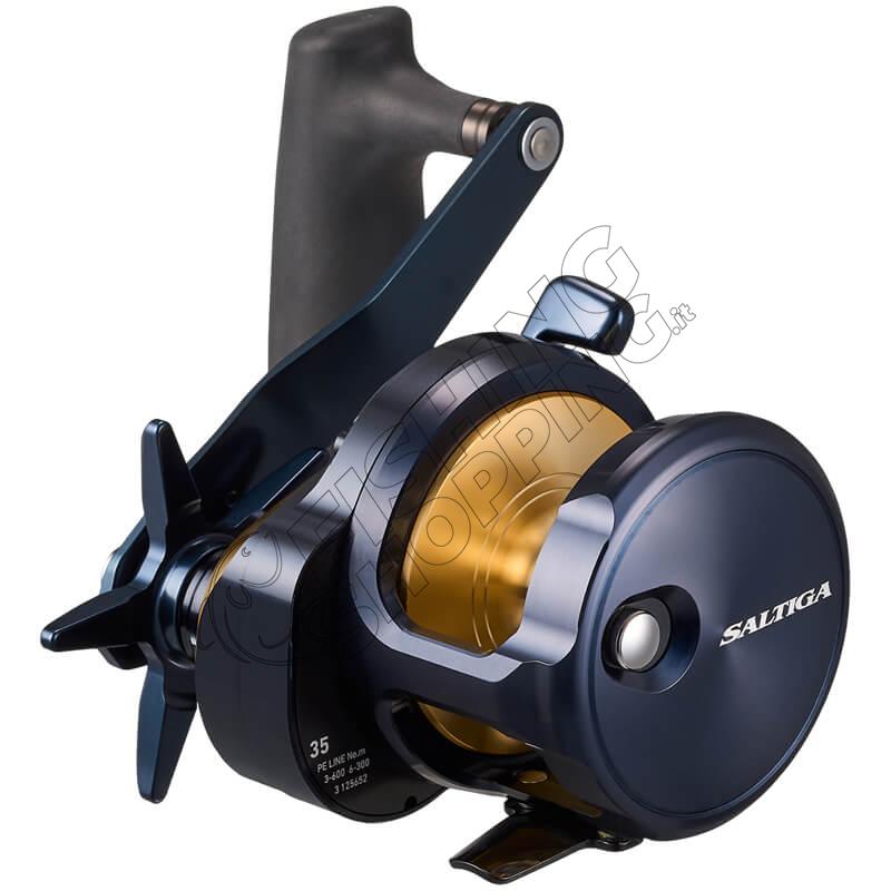 Featuring a 100–110 mm aluminum handle with a 105 mm Power T-shape knob, protective anodized finish, and ergonomic frame, the Saltiga 35 is engineered for comfort, balance, and maximum performance in deep-sea jigging.