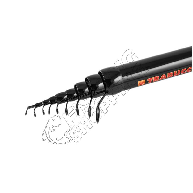 Its progressive tip action ensures precise bait control and smooth fish handling, allowing the use of weights up to 20 g and leaders up to Ø 0.18 – 0.20 mm.