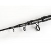 The Trabucco Quasar Tele Boat has a telescopic blank made of High Modulus CX1 Micro Pitch carbon, reinforced by external crossed carbon filaments. Supplied with 2 high sensitivity interchangeable fibreglass tips. Robust double leg S-SiC guides mounted on the blank, and single leg guides on the tips. A rubber o-ring is fixed to each ligature to protect the sections from knocks during transport. Graphite screw reel seat with anatomical grip. Aluminum closure cap with shock-absorbing rubber insert.